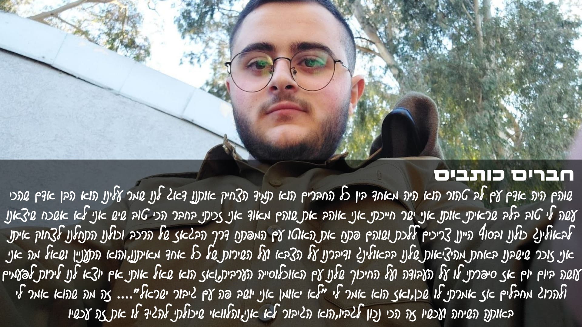 ביום 12.2.2023 התגייס לצה"ל לחיל הטכנולוגיה והאחזקה, ושירת כטכנאי בגדוד 13 בחטיבת גולני.