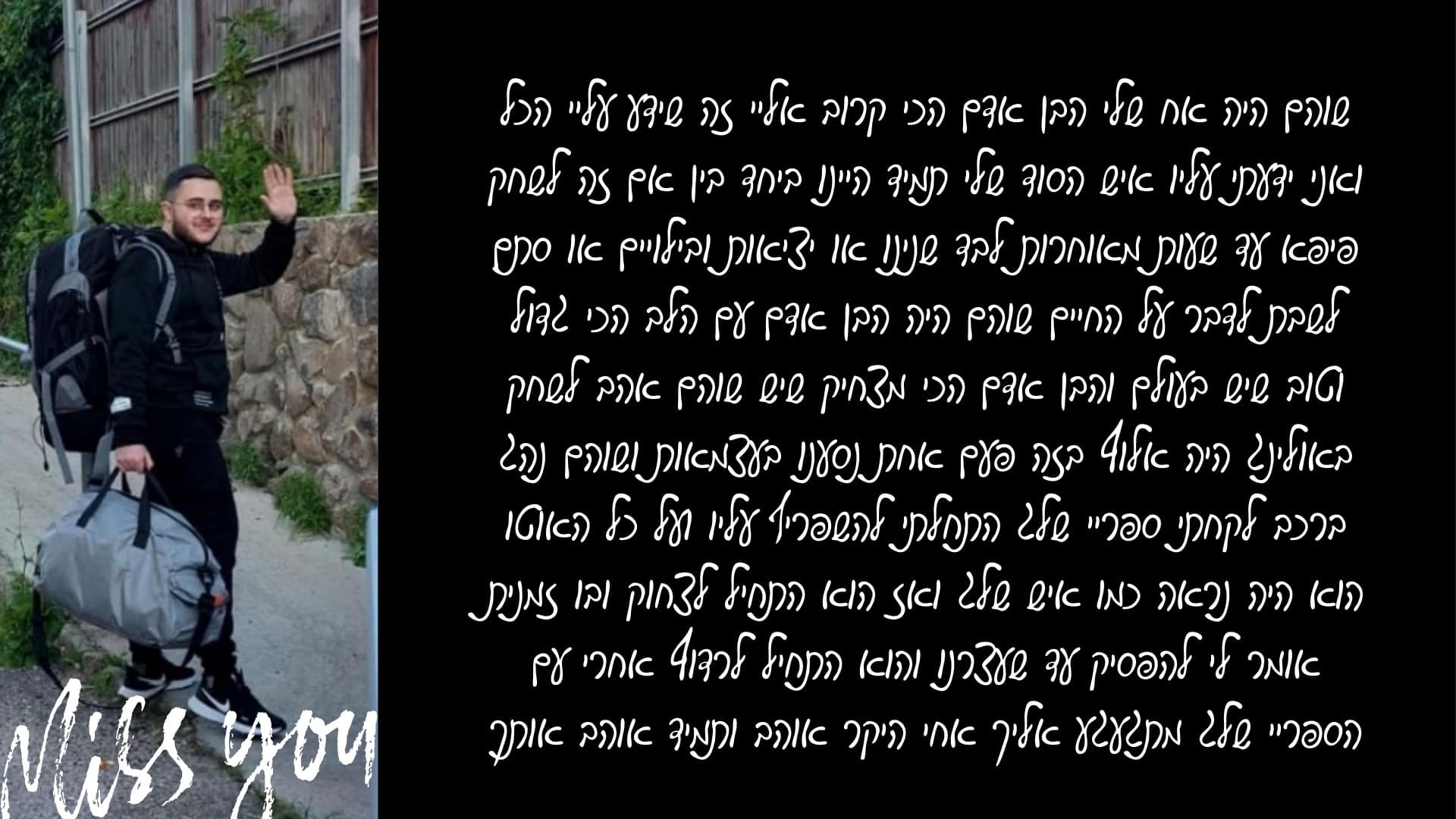 בנם של כרמית ואבי, נולד ביום י"ד בסיון תשס"ד (3.6.2004) גדל בקריית שמונה, אח לרותם.